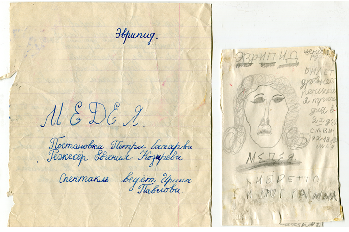 И отец наш, и Петя в детстве тоже участвовали в спектаклях. Подозреваю, что Петя был задействован в «Гамлете» и «Медее», т. к. в его архивах этим пьесам уделено особое почетное место. Спектакли эти были аншлаговые и шли все Петино детство («Медея» была одной из самых ярких постановок театра с музыкой Танеева, с симфоническим оркестром Силантьева и академической республиканской хоровой капеллой Юрлова).