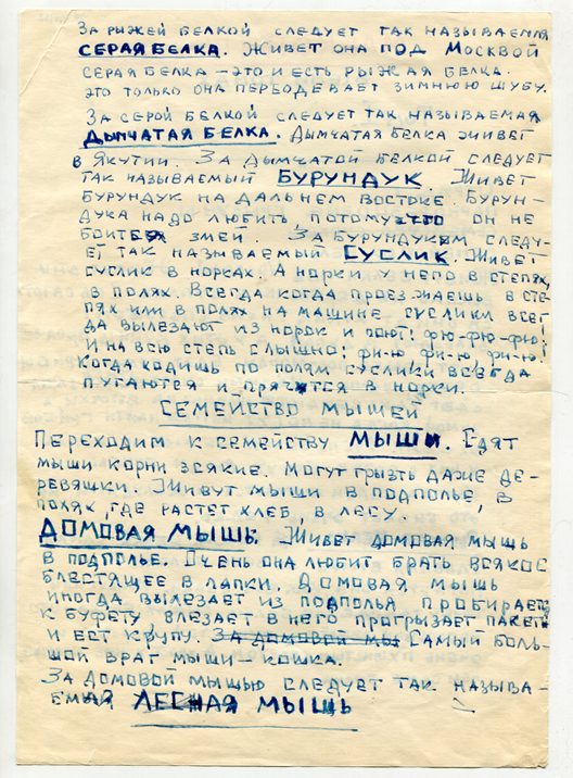 Запись сделана в школьных тетрадях 1967-68 гг. (Петру 10 лет)